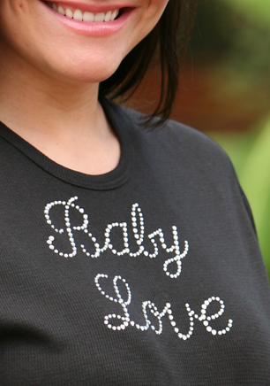 Rhinestone Baby Love: sheer rib short sleeve tee in black, teal or berry